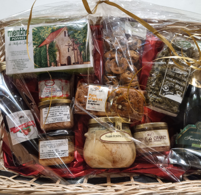 Tout au long de l'année et surtout pour les fêtes, nous réalisons des paniers "produits du terroir". Les tarifs des paniers seront en fonction de vos choix de produits du terroir auxquels il faudra rajouter le prix du panier (valisette, corbeille,...) et la conception (nous consulter par mail ou par téléphone).