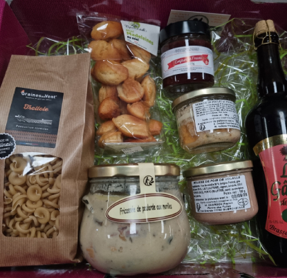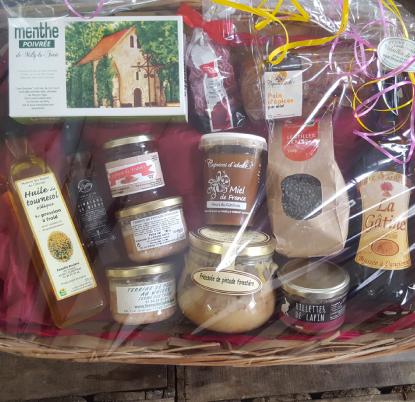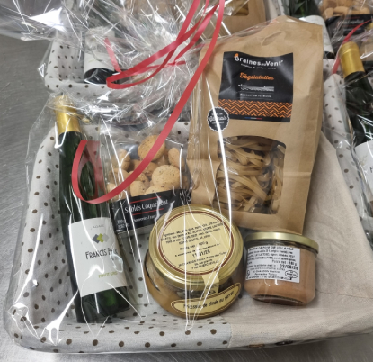 Nous réalisons aussi des paniers du terroir en plus grande quantité pour les entreprises qui le désirent (pour plus de renseignements : délai, quantité, prix, nous contacter par mail ou par téléphone).