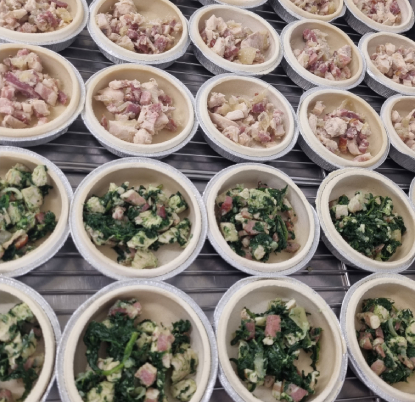 - Chaque semaine l’équipe vous propose des préparations savoureuses de volailles : production de nuggets, cordons, quiches, flammiches, bouchées à la reine, plast de semaine (Coq au cidre, coq au vin, boulette sauce tomates, lasagne, hachis parmentier de volailles…)